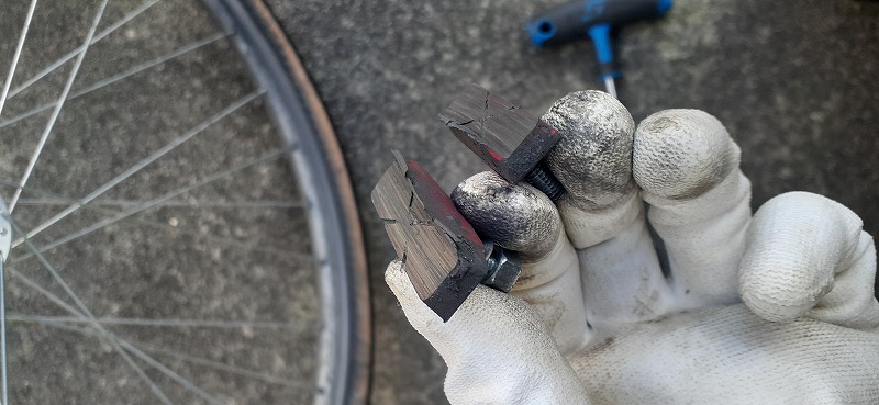 明らかにブレーキゴムの残量が無いことが分かります。
