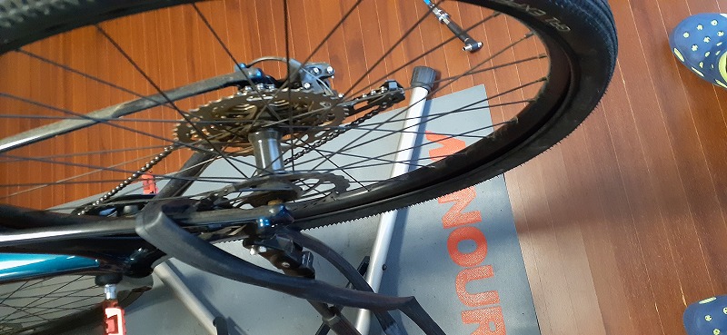 次はクロスバイクのパンク修理で作業場に持込での作業を致します。