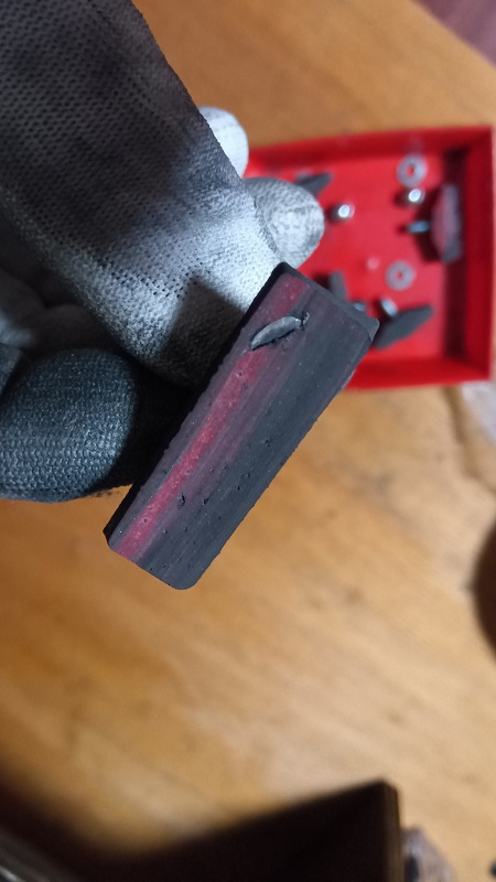 一番磨耗が酷い状態は中のフレームが露出してホイールを異常磨耗させてました。