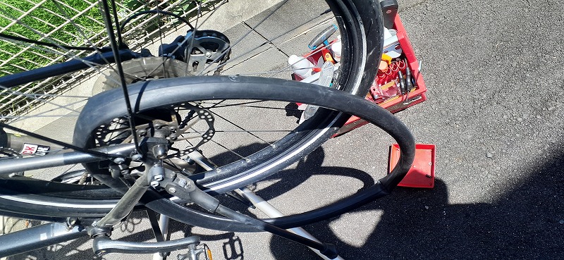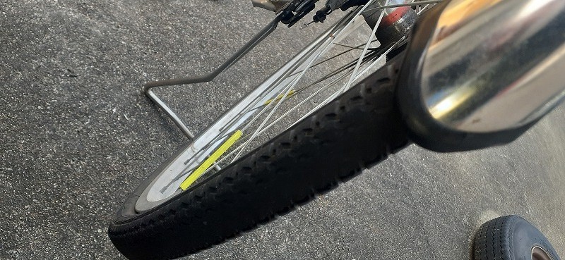 後輪がパンクですが通学距離が長くタイヤが磨耗します。