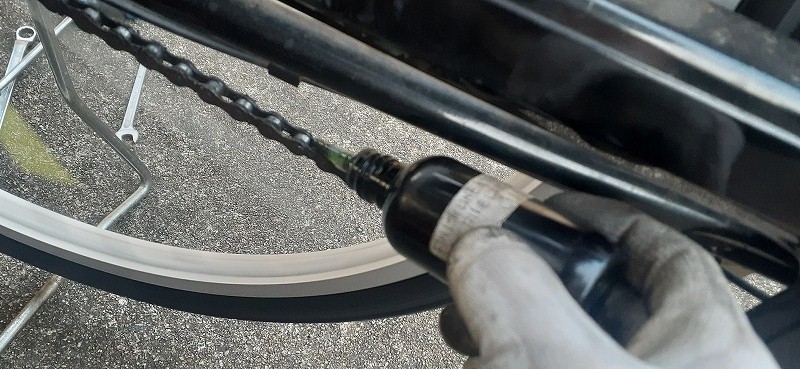 前回にも説明しましたが今回も正しいタイヤの空気の入れ方とチェーンの注油方法を説明して作業完了です。