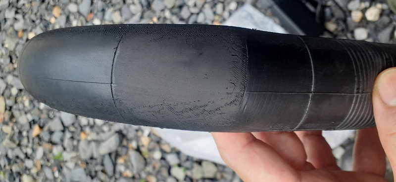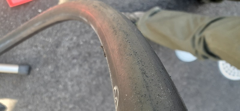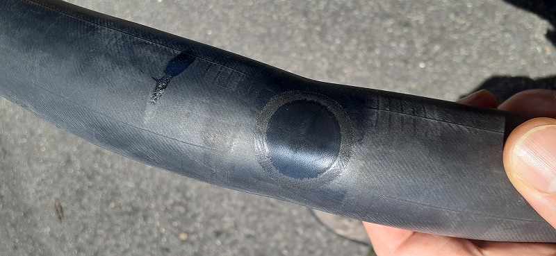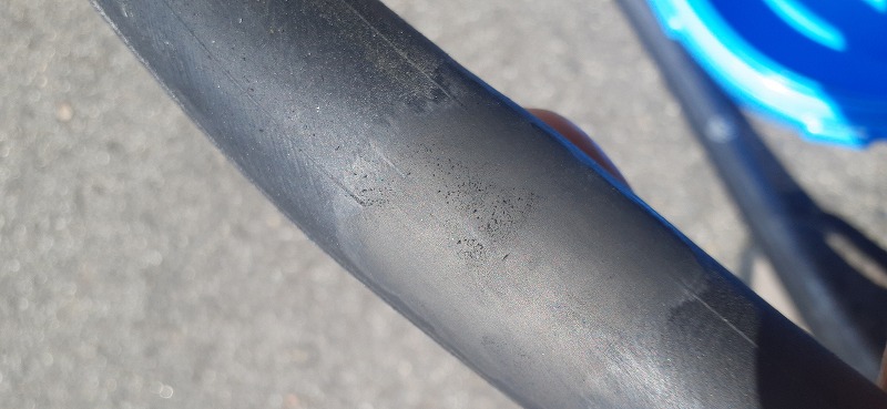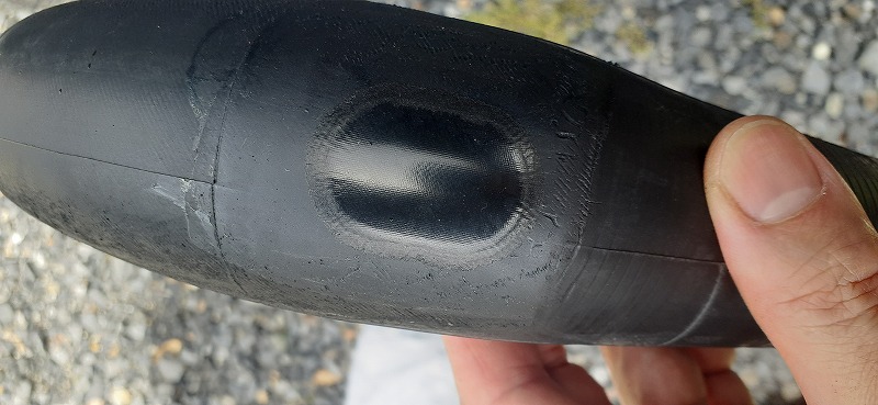 空気圧不足で走行をしてますのでチューブ表面が削れてます。