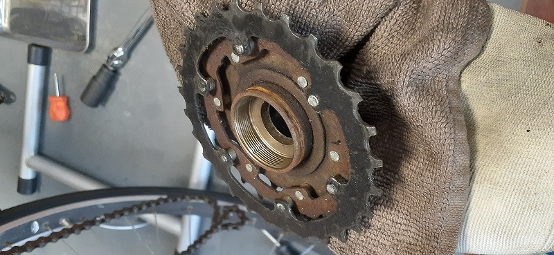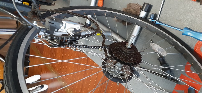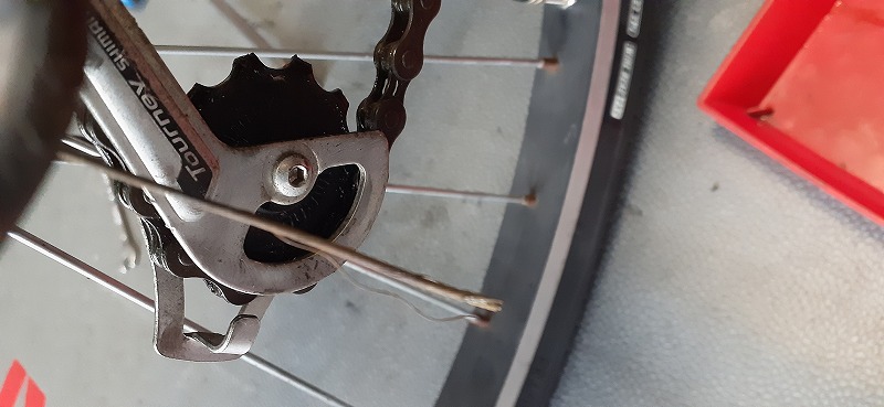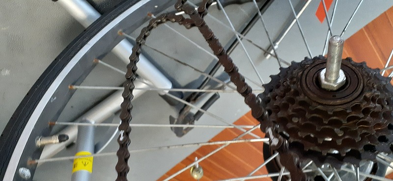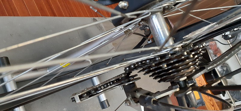 出先の駐輪所で停めていて乗ろうとしたところ当然チェーンが外れて噛み込んでしまったとの事です。