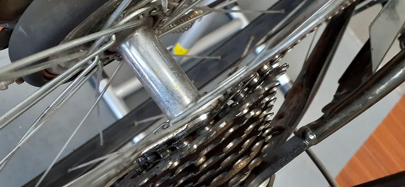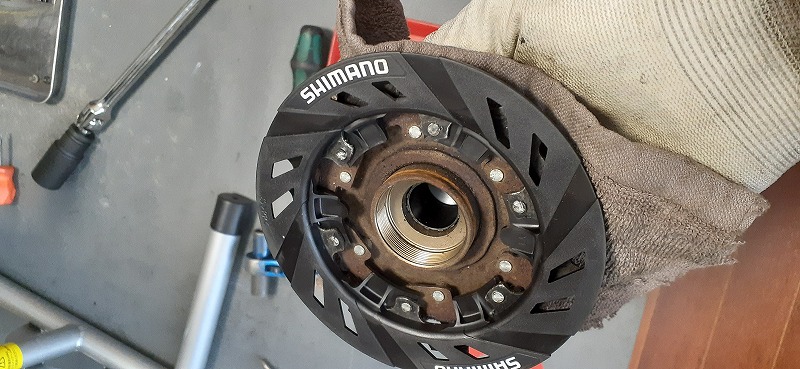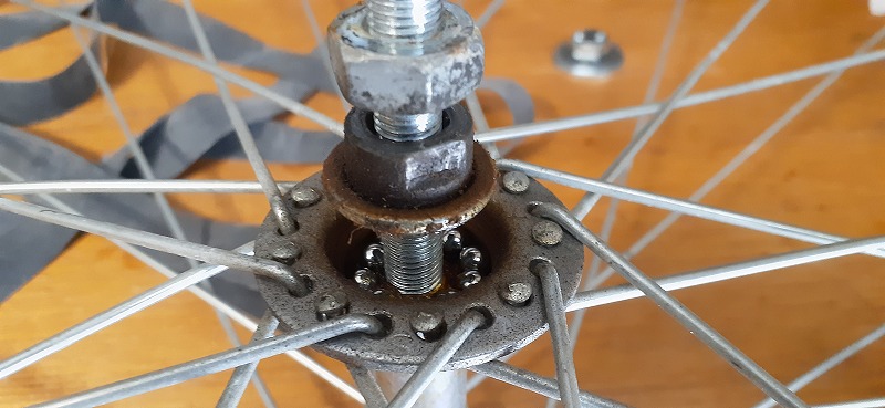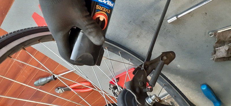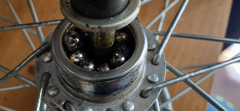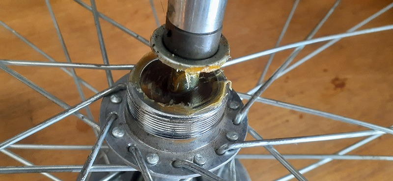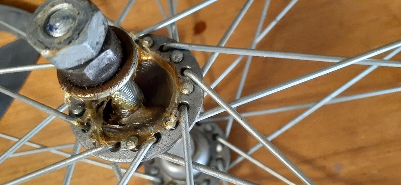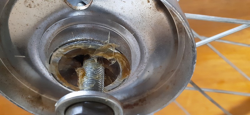 ハブのベアリングからはグリス切れの兆候がありホイール、スプロケットも外れているのでハブにグリスを注入します。