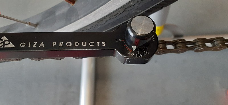 トラブルを起こした部分のチェーンの始まりと終わり部分にマーキングしてチェーンに変形や破損が無いか確認します。