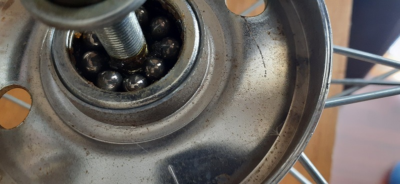 これからも長く使用できるようにフロントハブベアリングにもグリスを注入します。