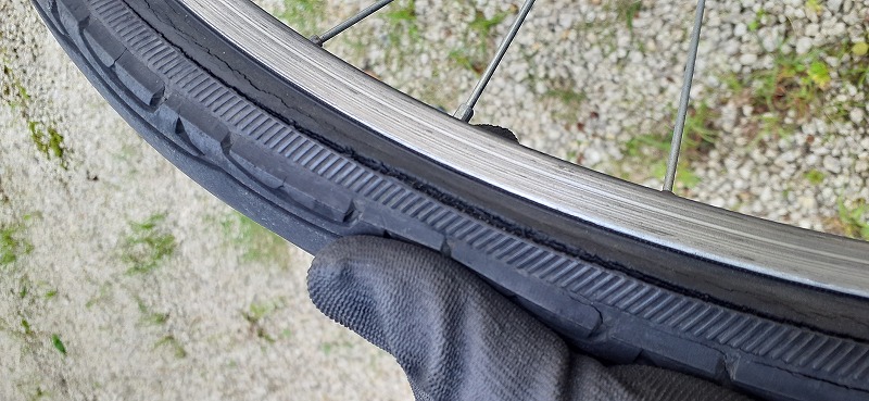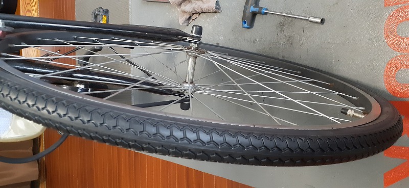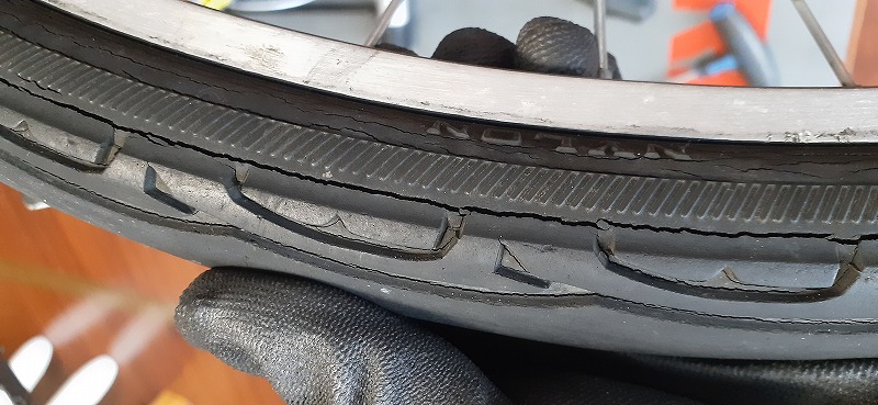 前輪も同様にひび割れが無数にあり劣化していますので交換します。