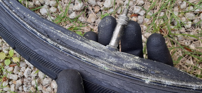 この車両は某量販店PB車両でチューブ内にパンク防止剤!?というものが注入されてます。