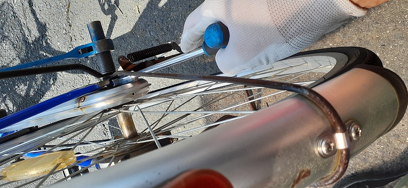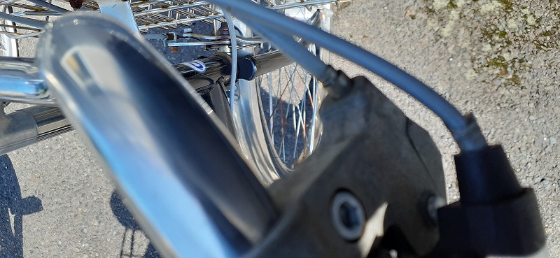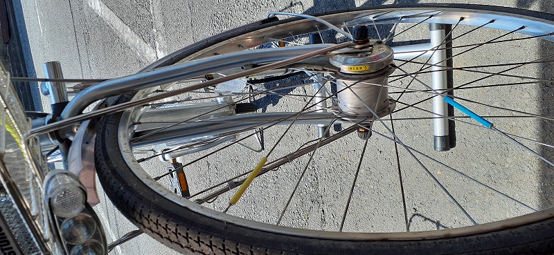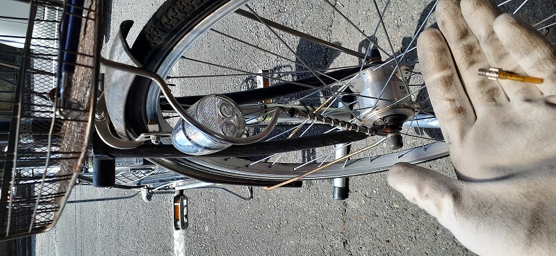 5台目も前後の虫ゴム交換、前後ブレーキ調整、チェーンの張り調整、各部注油、全体の点検整備を行います。前回の配達時に気がついていたベルの破損とチェーンケースボルト欠品は中古のパーツを装着し作業完了です。
