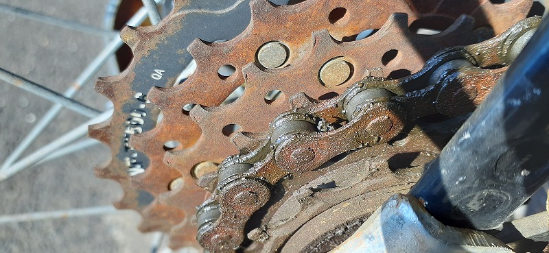 ブレーキワイヤーの亀裂、Fブレーキシューの欠品!?、スポークの錆び、シフターの破損等、全体的に不具合が多いので残念ですが廃棄処分となりました。