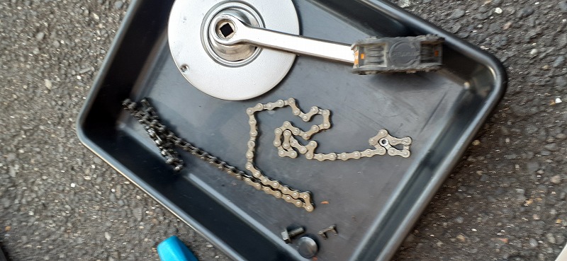 部品を外してチェーンなどの外れた部品を回収します。