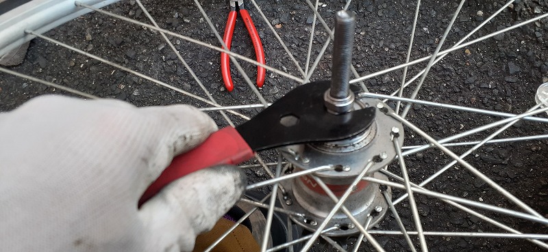ただハブのベアリングコンタクトの再調整が必要なので調整作業します。