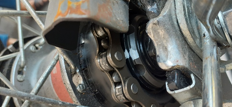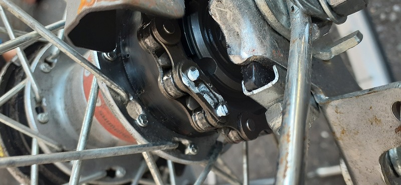 なんとなく予想はしていましたがチェーンだけでなく、後輪ギヤも外れてます。