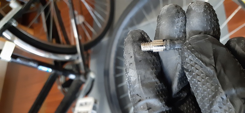 パンクは無かったので虫ゴムを交換しタイヤ、チューブを装着します。