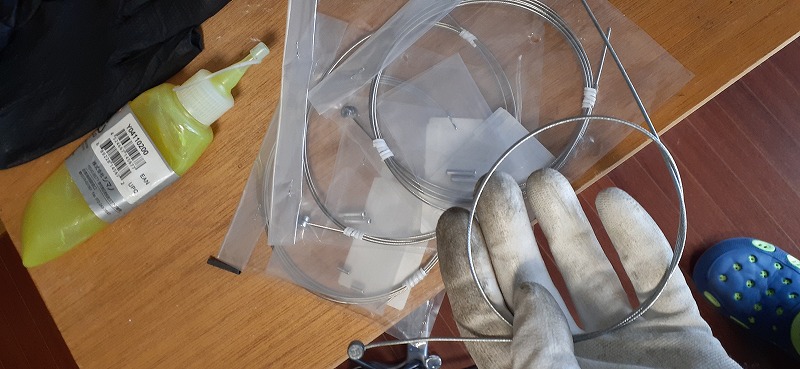 外装6段の変速ワイヤー内部の錆で変速が使用できないので新品のアウター、インナーワイヤーに交換します。