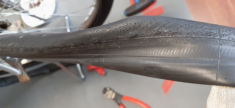 空気圧不足で走行をしてますのでチューブ表面が削れてます。