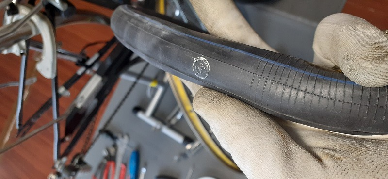 本来ですとチューブ交換が必要なほど痛みがありますがサイズやバルブ形状が特殊で在庫はありませんのでパッチ補修を行います。