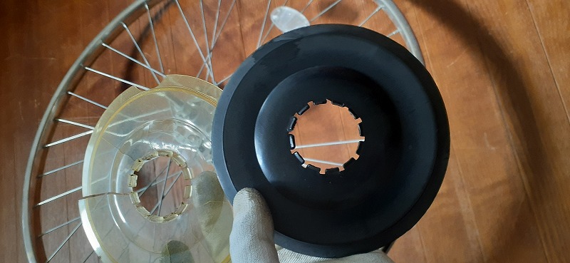 取り外す際には気が付いていましたが、ホイールを固定するパーツの一部が欠品しています。